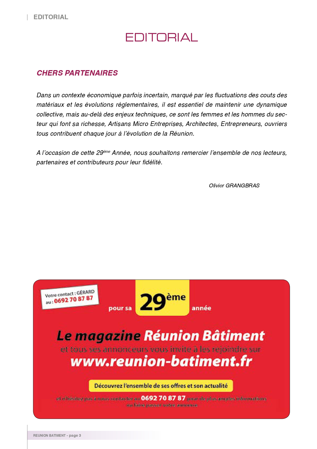 Editeur du magazine des professionnels du bâtiment à la Réunion depuis 20 ans.