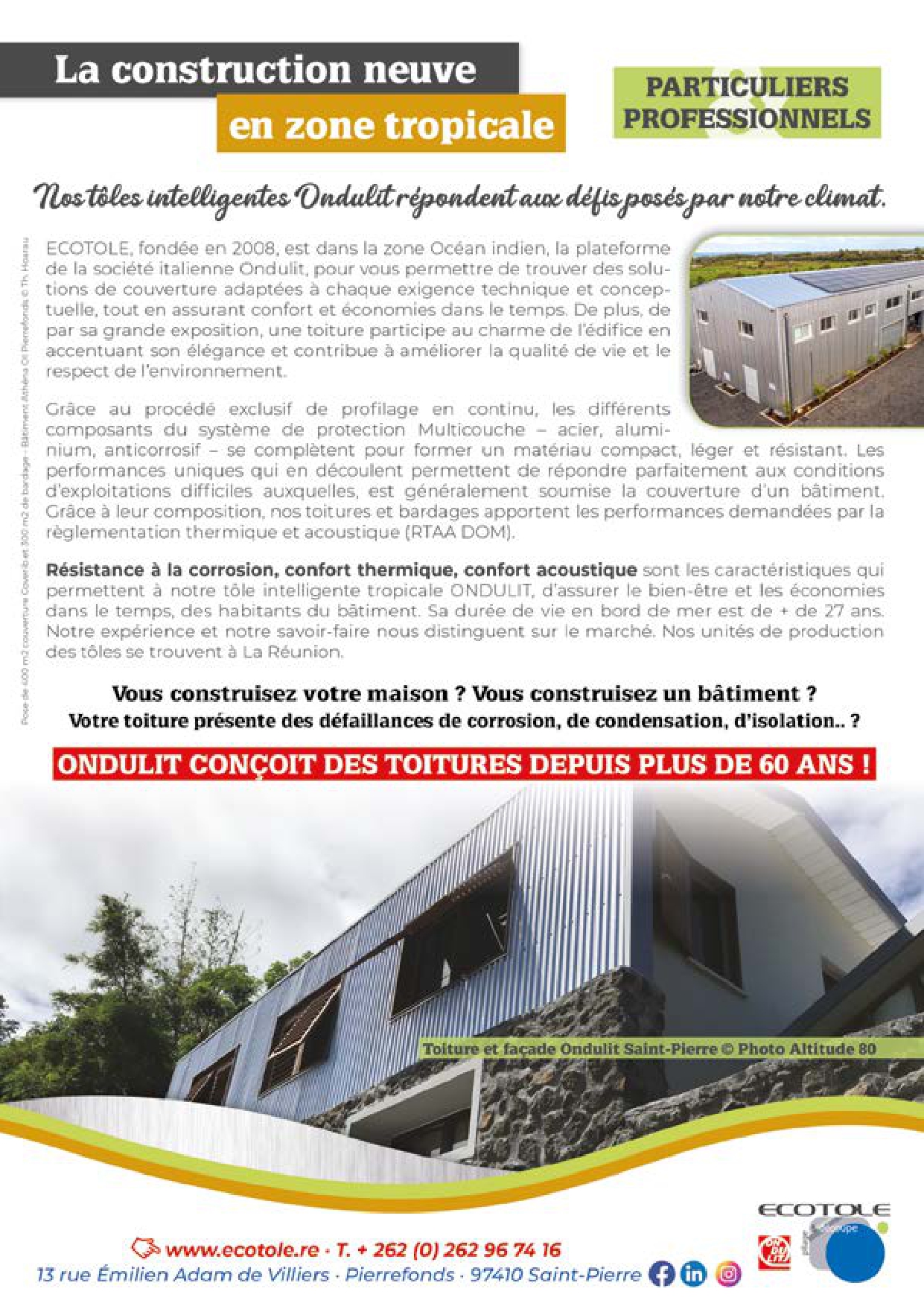 Depuis de nombreuses années, notre magazine s’efforce de vous donner les meilleurs informations en bâtiment. Nous vous offrons les meilleures offres sur les partenaires et les artisans de la construction sur l’île de la Réunion.